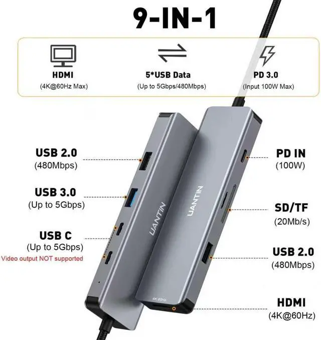 UANTIN: Elevating Connections in Work and LifeThe 9-in-1 USBC Hub Multiport Adapter is Plug and Play and requires no drivers. We provide high quality products that combine sophistication with affordability to help you enhance your work and personal life. We are committed to providing fast response support within 12 hours. Please feel free to contact UANTIN.