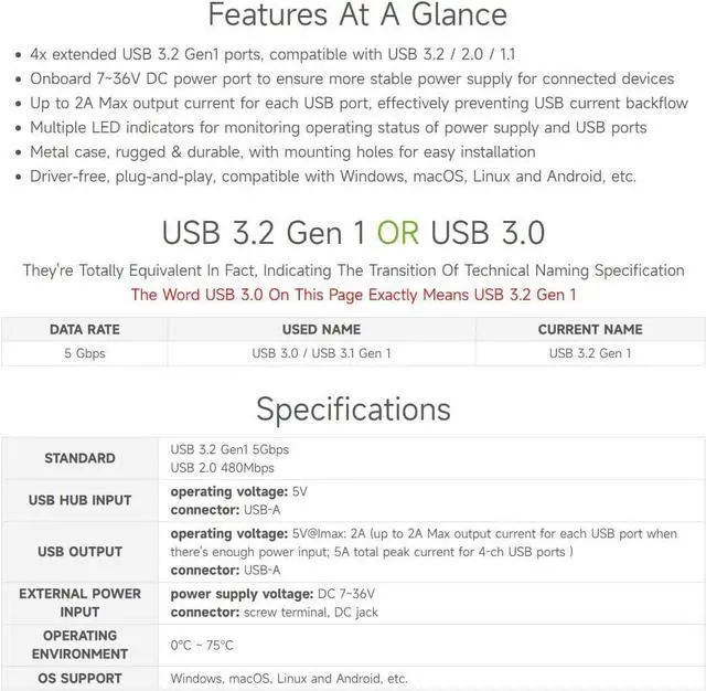 Onboard 7~36V DC power port to ensure more stable power supply for connected devices