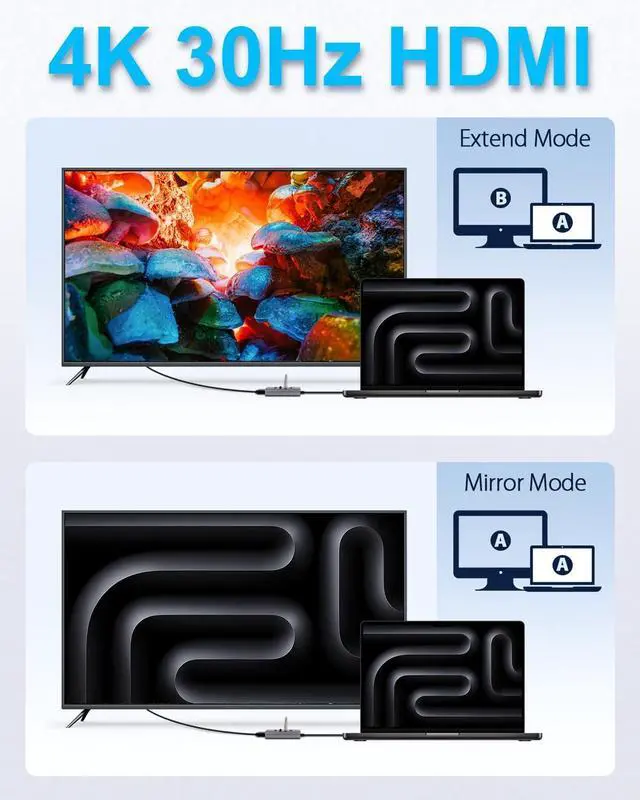 Stunning 4K HDMI Output: Enjoy ultra-clear 4K visuals at 30Hz when connected to external displays or TVs. Perfect for presenting slides, watching movies, or expanding your workspace.