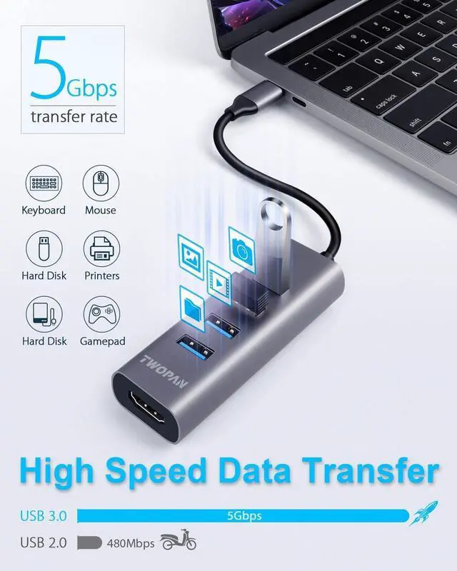 Streamlined USB-C Expansion: Turn one USB-C port into 5 powerful connections! Features 4K HDMI + 4 USB 3.0 portsideal for laptops with limited ports. Great for work, school, and daily multitasking.