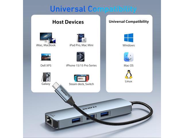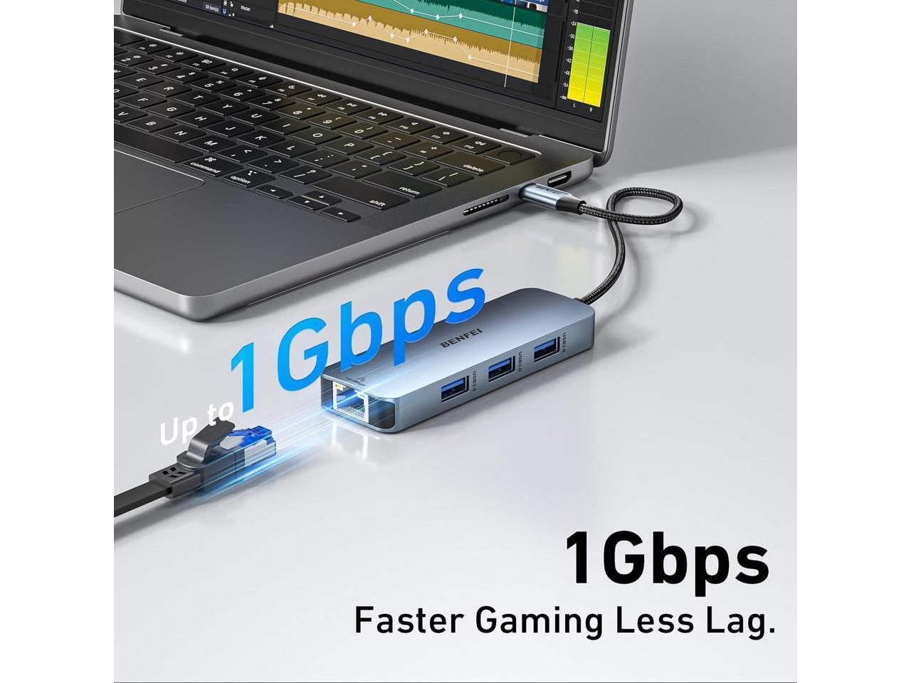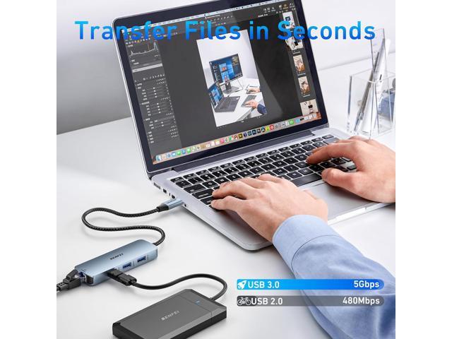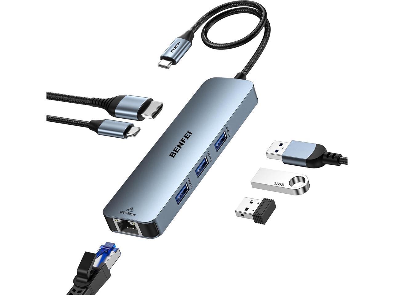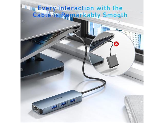 - Portable and powerful: BENFEI USB Type-C HUB, with super-soft and knot-free silicone woven design cable, 20cm, 25000+ life cycles, compact, lightweight, stylish, equipped with 1 x HDMI port, 1 Gigabit Network Access, 1 x 100W charging, and 3 x USB ports, meets most mobile office needs.