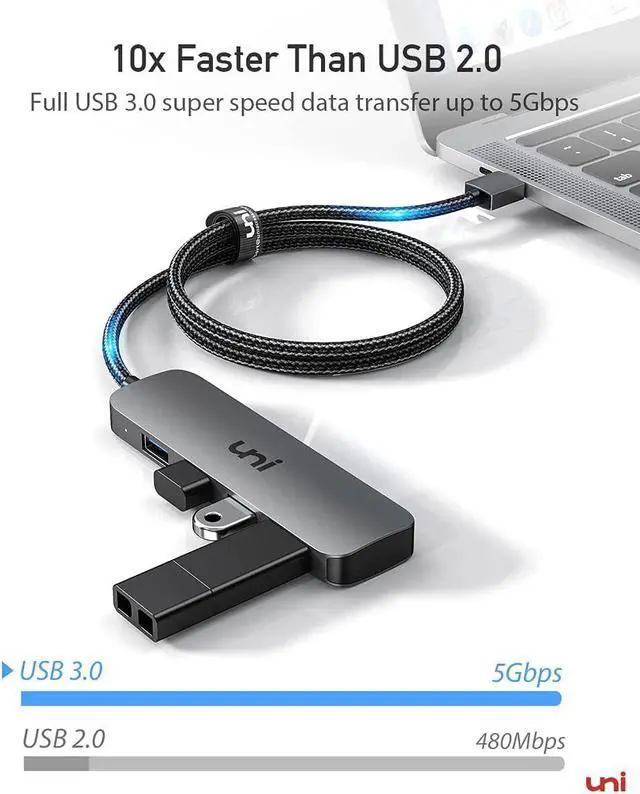 Wide Compatibilityuni USB C to USB Hub with 4 Ports compatible with MacBook Pro 2021/2020/2019/2018, iPad Pro 2021/2020/2018, Pixelbook, Galaxy Book, Pixelbook, Dell XPS 17 / 15 / 13, Surface Book 2, Samsung Galaxy S21/S20/S10, HP Pavilion Desktop and more.