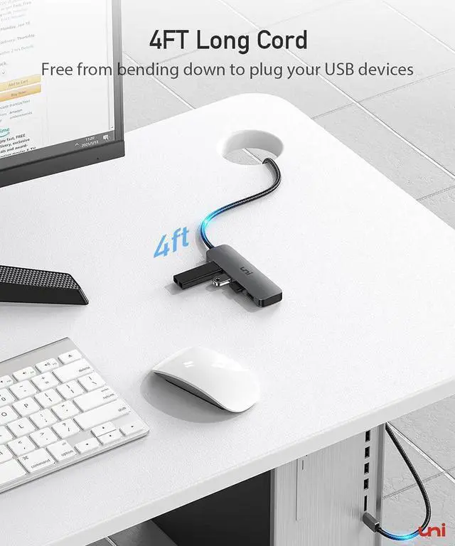 4FT Long Corduni USB C Hub with 4FT long cord will extend the usb port of your host, make you more convenient when using desktops, free from bending down to plug your USB flash disk or other usb device. [Hub no powered and cannot charge]