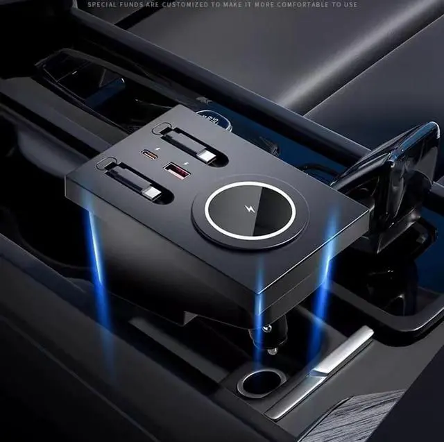 Car Fast Charger: Among the two retractable charging cables, one is a 45W Apple charging cable, and the other is an 45W Type-C charging cable; additionally, it comes with one USB charging port and one Type-C charging port