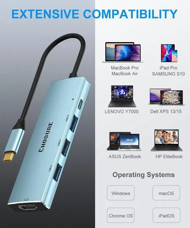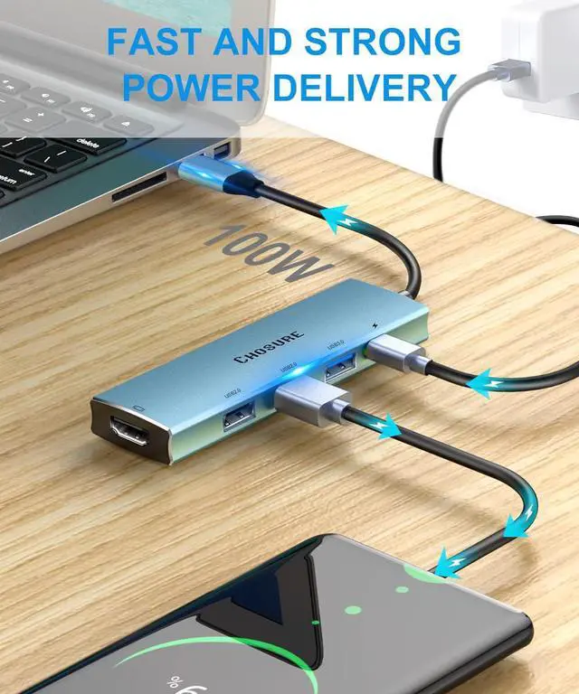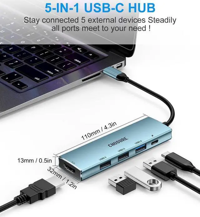 & Massive Expansion: This multiport type c adapter with 1*30HZ HDMI video output port that transfers media in seconds with 3D effect, 1*100W USB-C power delivery charging, 3*USB ports for superior data transfer. Chosure USB C hub is your telecommuting best choice to extend your Macbook screen