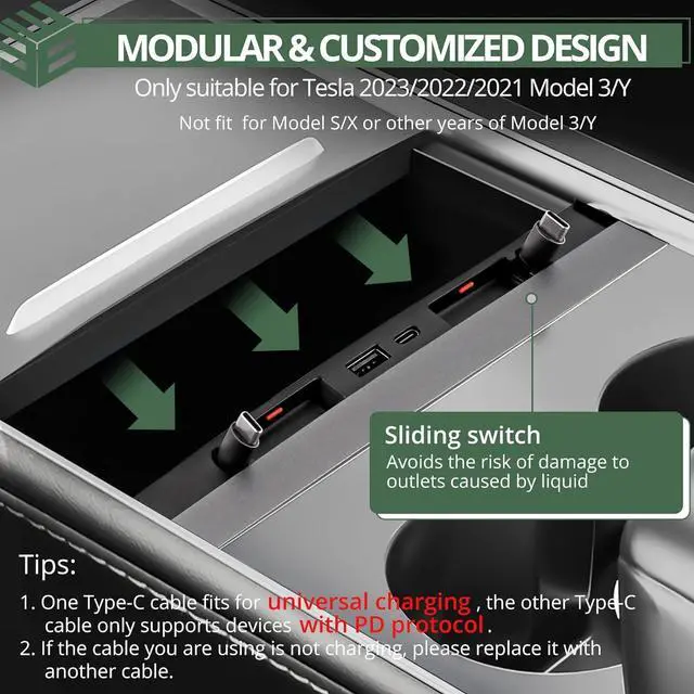 Excellent Usb Hub: USB Hub For Te, sla, Center Console Retractable USB Hub Interior Perfect Compatible with Tesla Model 3/Y, Customized accessory center control interface, The accessories are fully integrated with the center console Compatible with Tesla