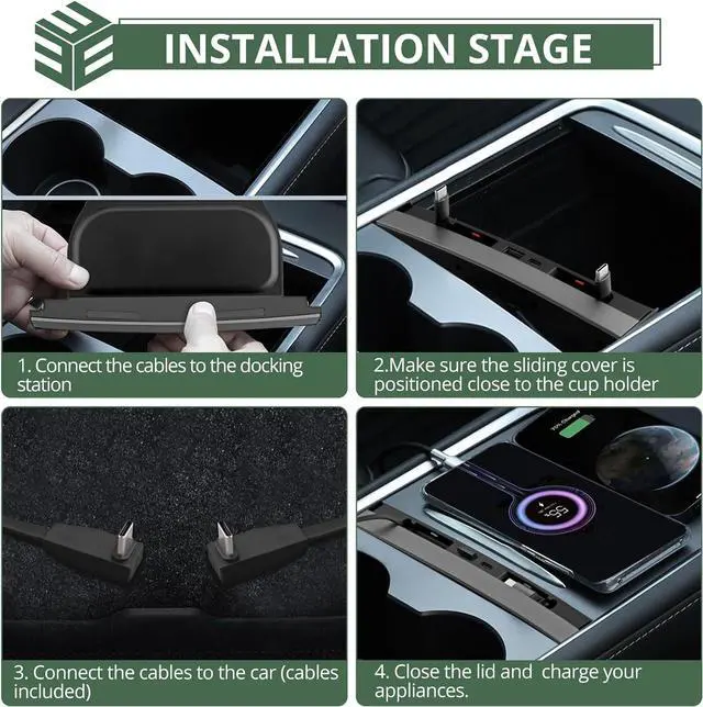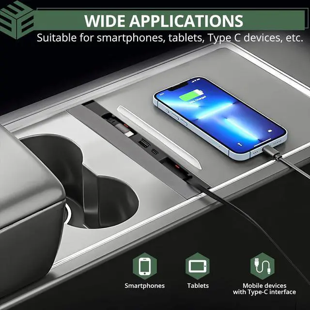 Fast Charging: The USB hub Compatible with Tesla Model 3, ModelY, easily identify mobile devices and provide charging efficiency, faster than on-board wireless charging, saving more time for your travel