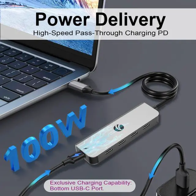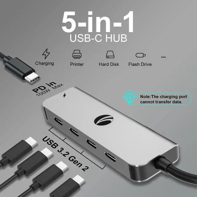 5 Port USB C Adapter VCOM USB C Hub has 4 USB C data ports and 100W usb c hub powered to meet your daily needs. usb c port expander can connect more TYPE-C Port devices to your laptop.