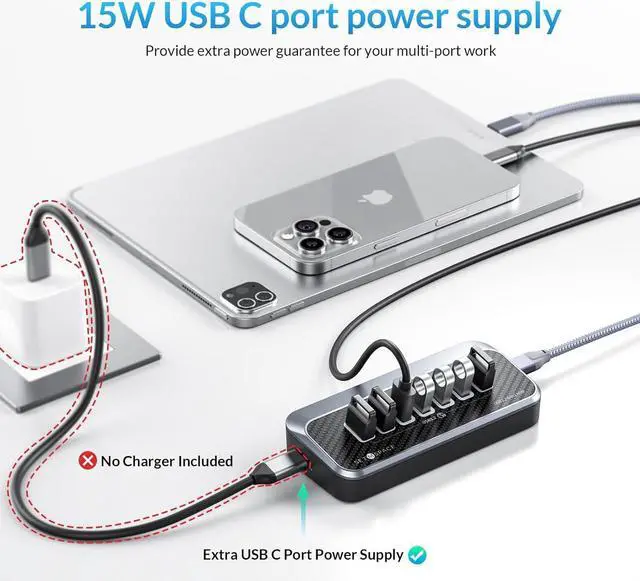 Multiple Port Expansion SETMSPACE USB C Hub turns one port of computer into seven. (This hub is not designed to charge devices. )