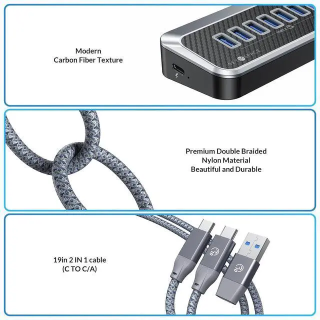 Extra Tough CableThis SETMSPACE USB C Hub c euipped with 2 in 1 cable. Not only for type-c port but also for usb-a port. And SETMSPACE HUB is precision-designed for heat resistance and incredible durability.