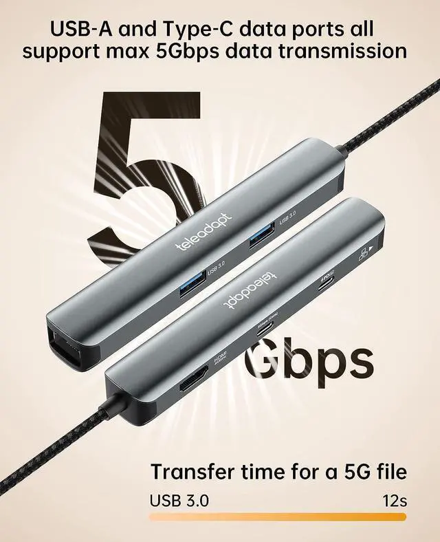 Fast Data Transfer: 2xUSB-A and 1xType-C data ports support a maximum of 5Gbps simultaneous data transmission
