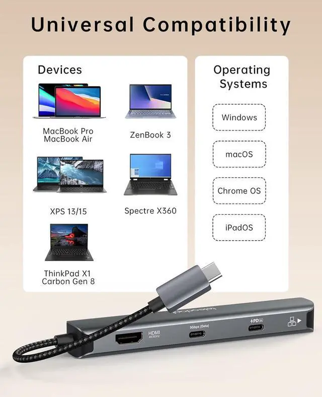 High Performance: Movies, presentations, or video games. Display UHD 4K@60Hz/30Hz or Full HD 1080p/60Hz video content on an HD TV, monitor, or projector. This hub has a DP 1.4 Alt mode support which enables HDMI video with max 4k/60Hz and High Dynamic Range (HDR)