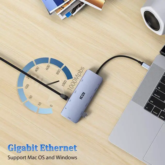 Ultra HD 4K HDMI: The HDMI port of the usb multipla can mirror or extend your computer screen directly to an HDTV, monitor or projector, enjoying a cinematic visual feast. Gigabit Ethernet port supports 10/100/1000Mbps fast network speed to download movies quicker and reduce latency in games. Make your work/life more efficient. The 3.5 mm audio port features an extremely compact and stylish design, easy to use and enjoy music and movies.
