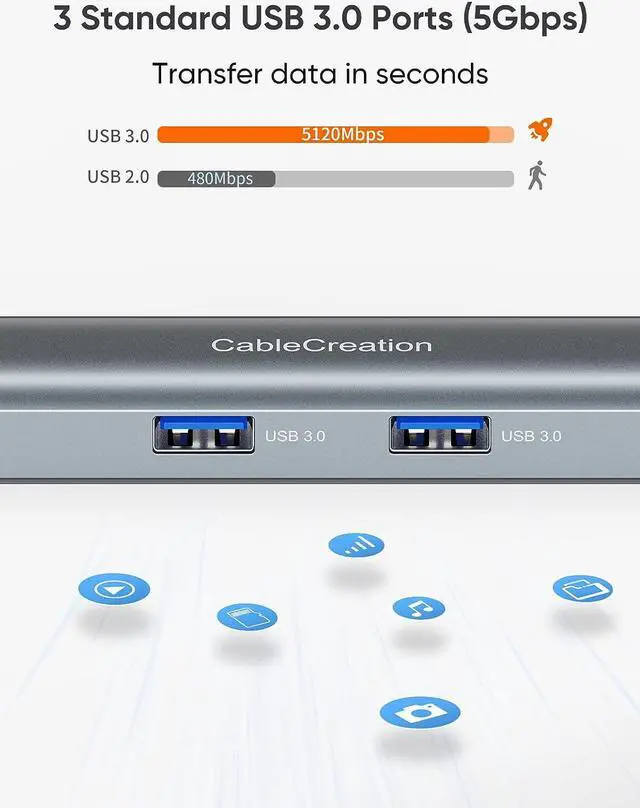 5Gbps USB 3.0 Port - Speedy Sync: 3 standard USB 3.0 ports, each with data transfer rates of up to 5 Gbps. You can connect multiple USB peripheral. Easily transfer large files in seconds