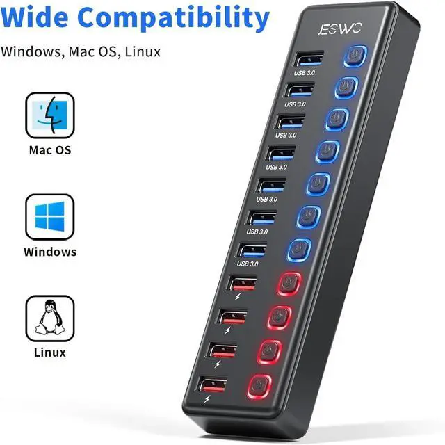 Wide Compatibility: Works seamlessly with Windows, Mac OS, and Linux, supporting a variety of devices including laptops, desktops, MacBooks and more, this versatile hub ensures your devices stay powered and connected with its durable build and wide-ranging support.