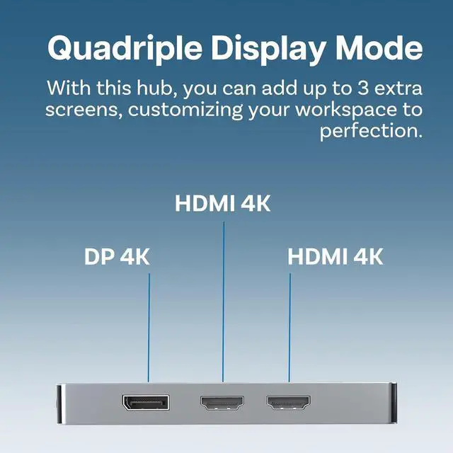 8-in-1 Quadruple Display With this hub you are able to extend your laptop to a quadruple display mode. It also works with smartphones compatible with Samsung Galaxy S series, MacBook series, iPad, PC, laptop, smartphone, tablet etc.