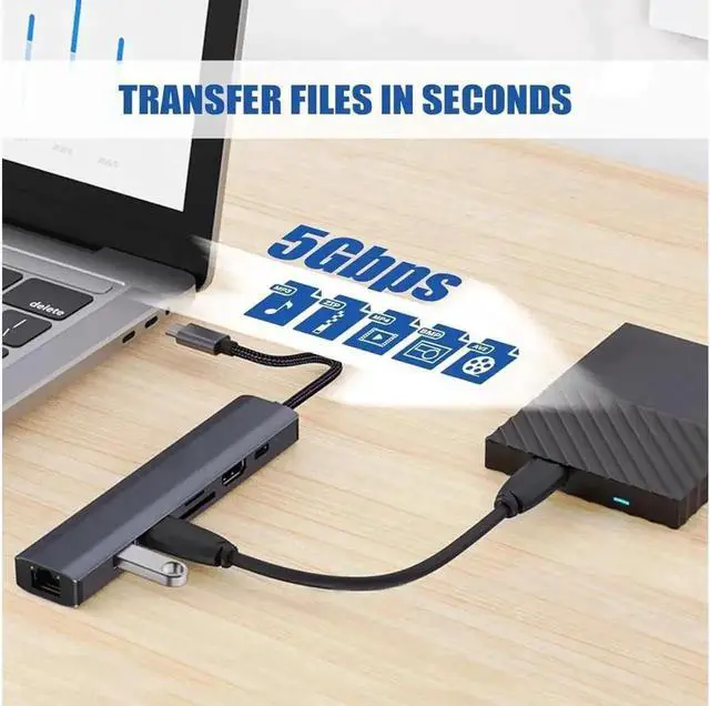 Multi-Functional USB C Adapter: Designed for Apple Families(compatible for Mac Macbook pro/air iPad Pro), includes 1*4K HDMI, 1*Ethernet port, 100W PD Port, 2*USB 3.0 (5 Gbps), and TF/SD card slot (up to 104 Mbps).