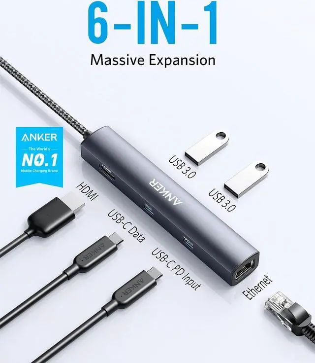 Massive Expansion: Equipped with a Power Delivery input port an HDMI port an Ethernet port a USB-C data port and 2 USB data ports.