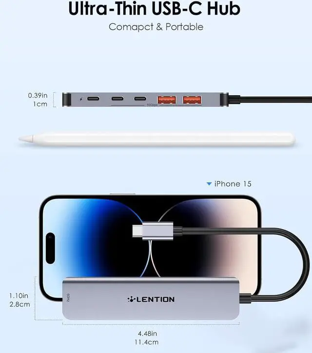 Please Note: The USB-C data ports are for file transfer and charging only and do not support video output. )Stunning 4K@60Hz Big Screen ExperienceMirror or extend your screen in crystal-clear Ultra HD quality via the HDMI adapter port. Enjoy fluid high-frame-rate movies and videos with your family or deliver seamless presentations in meetings without any lag or stutter. 100W High-Speed Pass-Through ChargingPower your host laptop or phone at full speed with up to 100W PD charging while simultaneously running all connected peripherals. Your usbc hub device stays powered up and ready for action eliminating cable clutter and the need for a separate charger. Stable Driver 3.0 Certified for Total ReliabilityWork with absolute confidence. LENTION's usb to usb c adapter proprietary Stable Driver 3.0 technology ensures zero interference between connected devices provides stable power to all ports and maintains a safe operating temperatureguaranteeing a reliable and cool-performing hub all day long.
