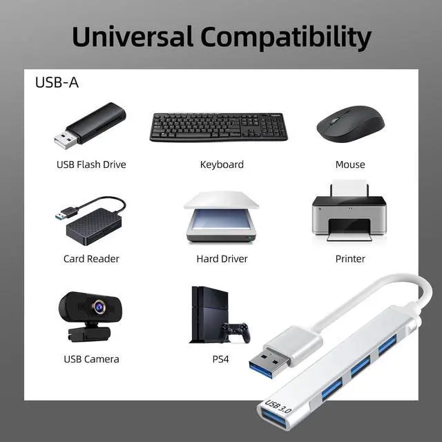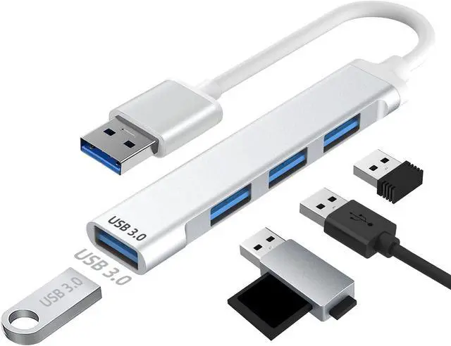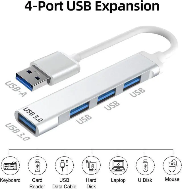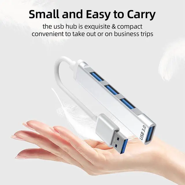 4-ports at Same TimeThis USB hub can easily expand one of your computers USB ports into four port (Does not support charging). Support 4 ports to work at the same time without any pressure and keep the temperature in the middle range. Plug and play no need driver easy to useWide Appliaction4-port USB expander applies to various devices: laptop pc tower XBOX PS4 flash drive keyboard mouse card reader HDD cellphone OTG adapter printer camera USB fan and USB cablesSuperSpeed TransmissionWith high efficient USB 3.0 4-port USB splitter provides 5 Gbps stable data transfer and is compatible with 2.0 / 1.0. It is fast enough to transfer an HD movie in secondsuser-friendly design1cm ultra slim body small convenient and beautiful. The user-friendly design takes into account the size of most flash drives on the market and the space between each USB port. Insert 4 flash drives at the same time without worrying about spaceFashion and practicality Featuring a lightweight aluminum body it combines style and functionality for on-the-go convenience