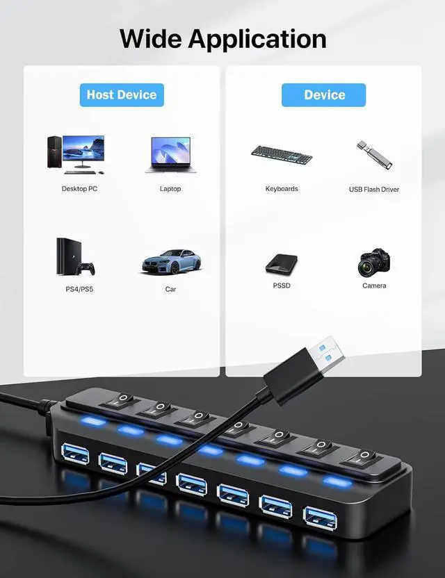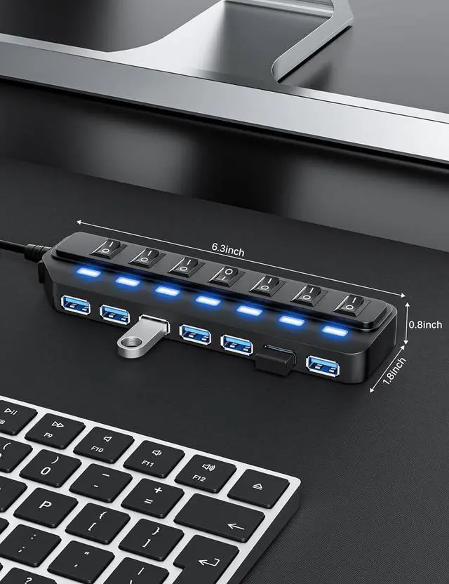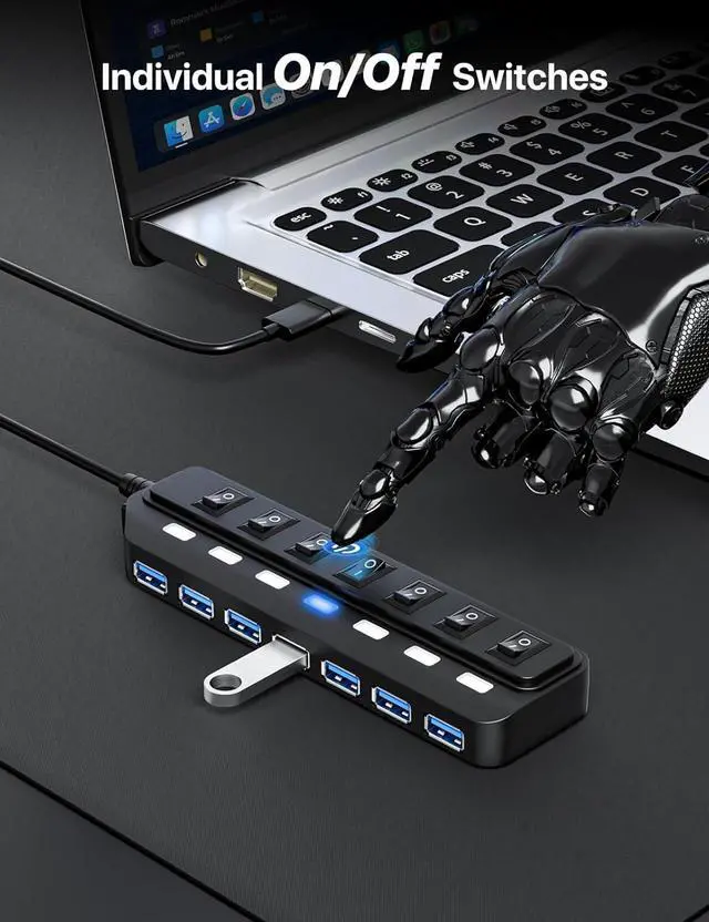 [USB PORT HUB EXPANDER] 7 port usb hub which makes it very easy to connect Multi USB devices to your PC laptop simultaneously such as keyboard mouse card reader mobile HDD webcam etc???????????????????????????????????????????????? [5GBPS DATA TRANSFER SPEED] The USB 3.0 Hub extension provides up to 5 Gbps data transfer speed which is more than 10 times faster than USB 2.0 and it is backwards compatible with USB 2.0 / 1.0 [INDIVIDUAL ON/OFF SWITCHES] WIRWTRU USB hub has built-in on and off switches with led indicators for each port being able to turn on or off the separate USB port without unplugging the equipment blue LED lights let you know the working status easily.