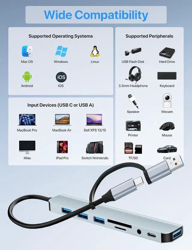 Wide Compatibility: This USB-A & USB-C hub Compatible with USB-C compatible with all PC laptop Such MacBook Pro/MacBook Retain/MacBook Air or Phone/Tablet with a Type C portWindows 10 MacOS X Android Chrome OS Google (Up) Linux