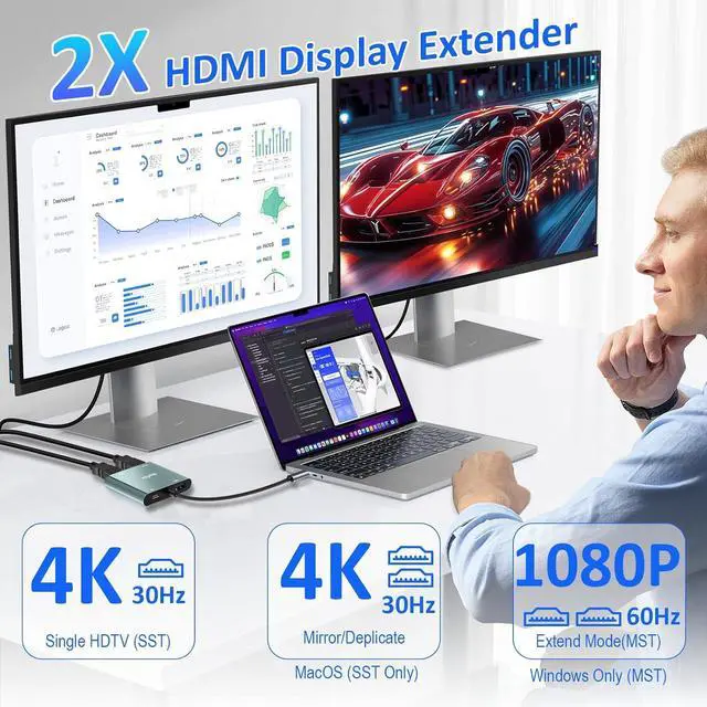 ?????????????????? Stunning Dual HDMI Display- Herfair USB C to dual hdmi adapter supports both HDMI ports to be used at the same time supports up to 4K@30Hz resolution when using one alone and dual 1080P@60Hz when using both.???????????????????????????????????????????????????????????????????????????????????????????????????? (???????????????????????????????????????????????????????????????? )