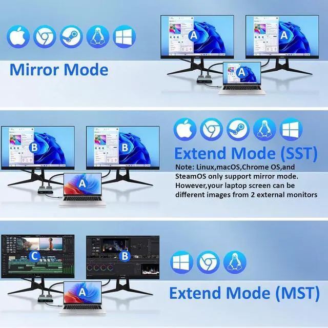 ?????????????????????????????????????????????????????????????????????? (?????????????????????? )Multiple Display Modes & Functions- Herfair USB C HDMI splitter for dual monitors supports both Mirror and Extend mode for MacOS (SST) and Windows (MST) laptops.