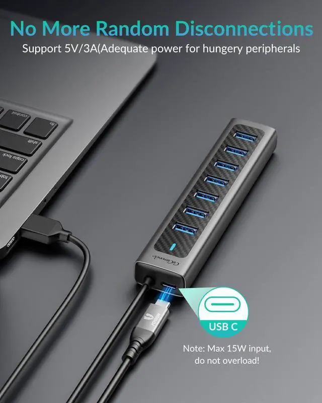 Note: Using a 15 Watts block can provide more power to hungry peripherals through the additional USB-C power portPerfect Combination of Metal and Technology - The construction was crafted from premium aluminum plus a few solid ABS accents which makes this hub looks sophisticated and elegant appearance. It aslo provides excellent heat dissipation for optimal performance and complements any workspace keeping your desk organized and clutter-freePlug-and-Play Mac & PC Compatible - Enjoy hassle-free setup with plug-and-play functionality. No additional drivers or software installation required simply plug it in and you're ready to go! Whether you're using a Mac or PC this hub is compatible with both offering seamless connectivity across various devicesCompact Size USB Splitter - 3.3 ft long cord designed for convenience this hub's handy size makes it ideal for desktop use saving valuable space while providing maximum functionality. Say goodbye to limited USB ports this hub acts as a USB splitter allowing you to connect multiple devices with ease