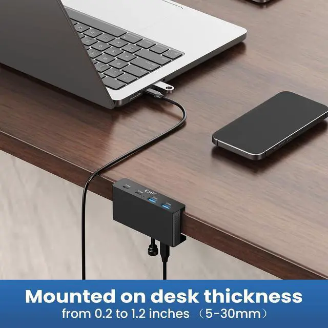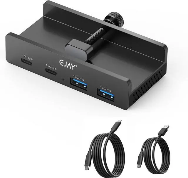 Clamp USB Hub: USB 3.2 Hub*1 47 inches C TO C Data Cable*1 39 inches A TO C Power Cable*1Innovation Design-No More Sliding: Adajustable Clamp Hub Replace traditional USB Hub which with the disadvantages of sliding everywhere hard to plug and unplug and take up space the new design Hub can fit the thickness from 0.2 to 1.2 inches (5-30mm)extended the USB fuction from host to desk install the hub where you need at a convenient place enjoy the stable data transmission more easier and no need to squat down the table to connect every deviceTidy