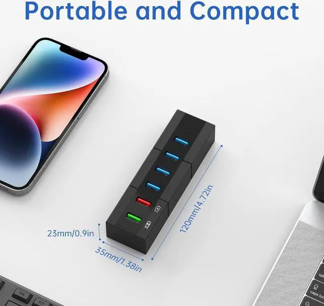 Expansion: This usb hub has 4 high speed USB 3.0 data transfer ports that make it easy to connect multiple USB devices like keyboards mouse flash drives to a laptop or PC simultaneously; There are also 2 smart fast charging ports for you to charge phones tablets etc5