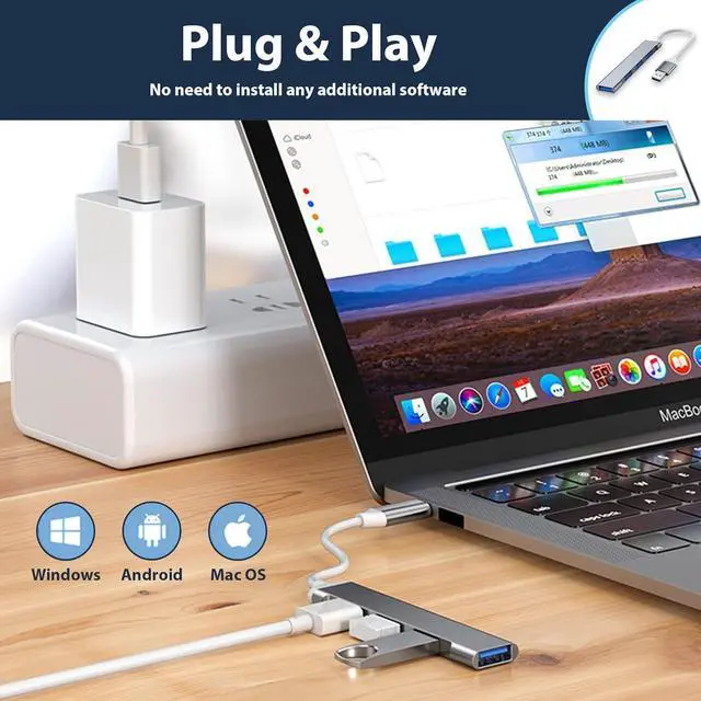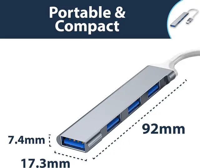 4-ports at Same TimeThis USB hub can easily expand one of your computers USB ports into four port (Does not support charging). Support 4 ports to work at the same time without any pressure and keep the temperature in the middle range. Plug and play no need driver easy to useWide Appliaction4-port USB expander applies to various devices: laptop pc tower XBOX PS4 flash drive keyboard mouse card reader HDD cellphone OTG adapter printer camera USB fan and USB cablesSuperSpeed TransmissionWith high efficient USB 3.0 4-port USB splitter provides 5 Gbps stable data transfer and is compatible with 2.0 / 1.0. It is fast enough to transfer an HD movie in secondsuser-friendly design1cm ultra slim body small convenient and beautiful. The user-friendly design takes into account the size of most flash drives on the market and the space between each USB port. Insert 4 flash drives at the same time without worrying about spaceFashion and practicality Featuring a lightweight aluminum body it combines style and functionality for on-the-go convenience