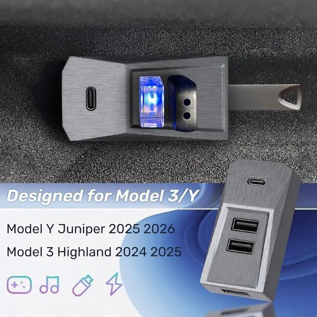 2025. The hub installs seamlessly inside the glovebox without interfering with its functionality. Its angular Cybertruck-inspired design blends perfectly with your ModelY Juniper or Model3 Highlander creating a factory-style appearance that feels right at home. No drivers are neededsimply plug and play4-Port USB Hub