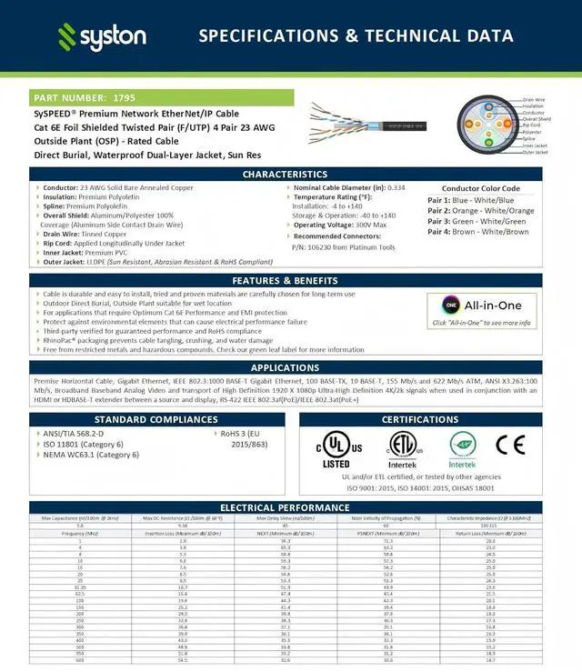 Designed for Outdoor Use: Our Cat6e network cable is designed with direct burial material. Engineered to withstand moist environments and plant root exposure, making it ideal for direct burial applications.