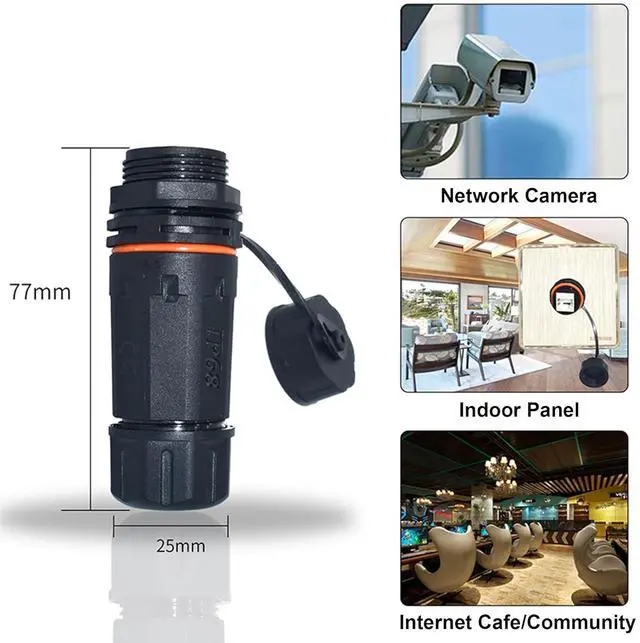 High-Performance Extension Connection: The IP68 Waterproof RJ45 Coupler is designed to extend Ethernet connections by seamlessly joining two short network cables. It supports high-speed data transfer up to 10 Gbps, meets Cat6A performance standards, complies with TIA/EIA 568-C.2, making it ideal for outdoor holiday lighting displays, IP security cameras, and industrial applications.