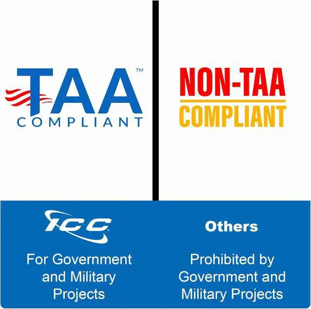 TAA COMPLIANT & SECTION 889 CERTIFIED: ICC CAT5e keystone jacks meet U.S. government regulations, including TAA and Section 889. Manufactured in approved countries, with UL Listing and RoHS Compliance. UL 1863 compliant for safety, thereby ensuring adherence to the highest standards. ETL Verified for performance, they conform to TIA 568.2-D (U.S.) and IEEE 802.3 (International) standards, supporting Fast Ethernet (100BASE-TX) and Gigabit Ethernet (1000BASE-T) applications.