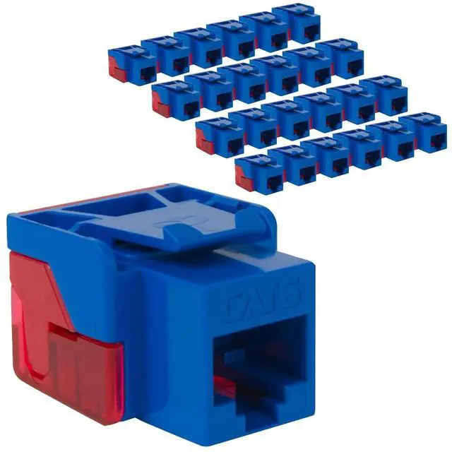 ICC CAT6 Keystone Jack with Inline IDC No Pair Split Wiring (Easier Termination) UL Listed PoE++ TAA Compliant for Wall Plate or Patch Panel, Works with JackEasy Termination Tool, Blue, 25 Pack
