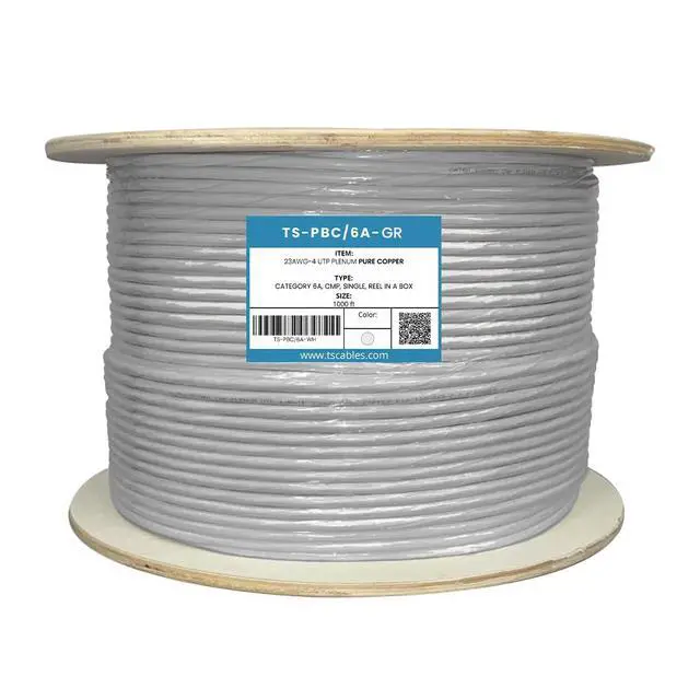 Turnstone Cables, Inc CAT6A Plenum (CMP) UTP (Unshielded Twisted Pair) networking cable has enhanced performance and high 750MHz bandwidth capacity, fire retardant, meets, exceeds TIA/EIA 568-C.2 standards, and is RoHS compliant. Our CAT6A plenum cable comes in easy pull reel/spool packaging for smooth and easy installation, and is ideal for commercial and residential networking. 23 Awg Pure Copper conductor insulated with hdpe to stop extreme attacks Our CAT6A plenum (CMP) rated jacket Ethernet cable comes in multiple colors and is best for computer/Laptop, printers, gaming consoles, routers, Ethernet extenders, switch boxes.
