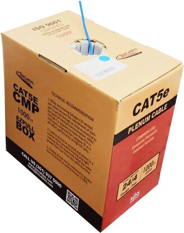 TANGLE-FREE EASY PULL BOX PACKAGING: Our Cat5e Plenum Cables has been packaged in a Hassle free Easy Pull Box. Our 1000 feet of cable has sequential foot marking.