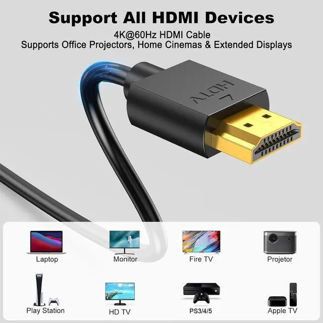 Omnipotent HDMI Cable: Compatible with all of your HDMI devices. Suitable for all HDMI devices - All TV(Fire Ro-ku SHIELD Apple Vizio Sony LG Samsung),All OLED TV,Smart TV, Soundbar,PS5/4/3,PC,All Xbox Series,Switch, KVM, Laptops, Blu-ray players, monitor, projector. Indispensable 4k hdmi cable 6 feet for home and office equipment. Support Mirror & Extend & game mode