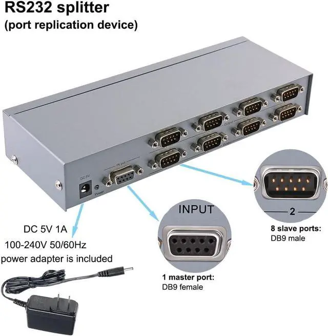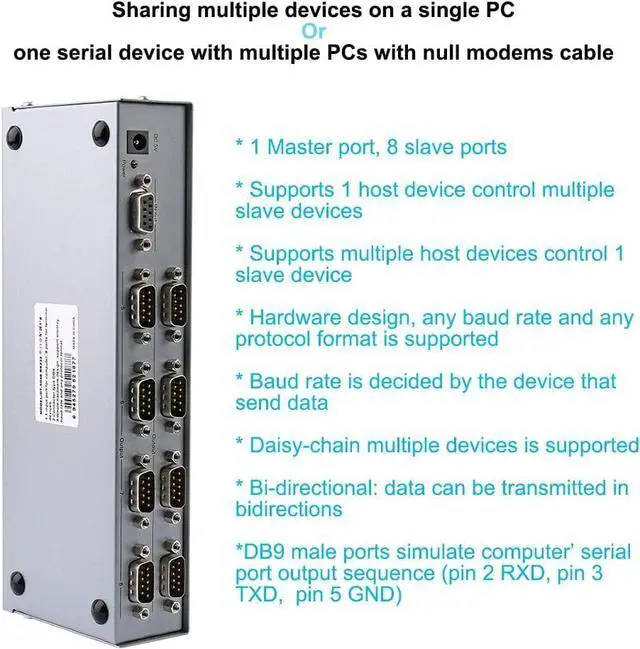 Serial line splitter supports Bi-directional transmission and enables you to use 1 master to control 8 slave devices at the same time, or use 8 masters to control 1 device