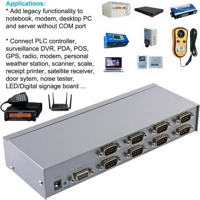 9 Pin Serial Port Expansion Hub adds 8 real hardware serial rs-232 ports to your system for data communication