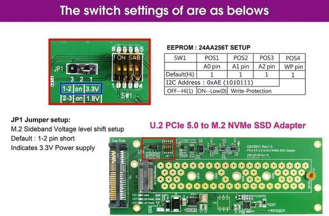 The adapter usually supports standard M.2 power delivery requirements, typically 3.3V from the U.2 connector, ensuring proper operation of the attached M.2 NVMe SSD.