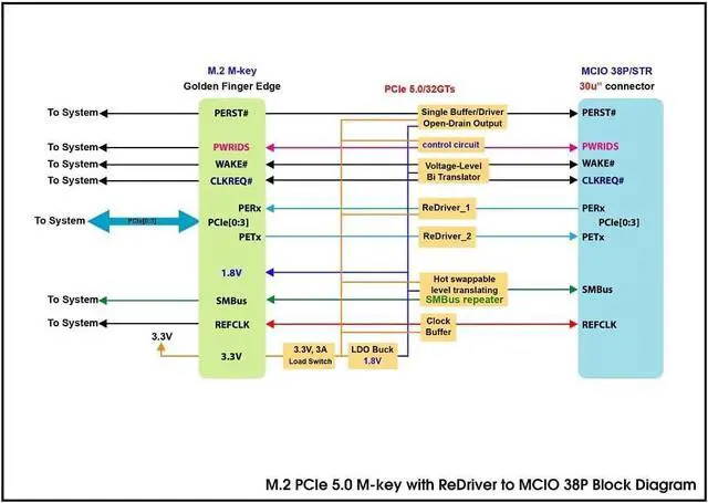 • An integrated signal enhancement component that helps maintain signal integrity over longer distances, especially useful at PCIe 5.0 speeds.