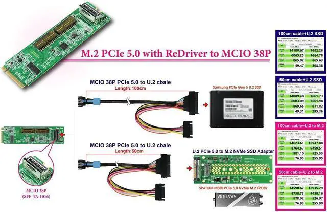Micro SATA Cables M.2 M-Key PCIe 5.0 with ReDriver to MCIO 38P