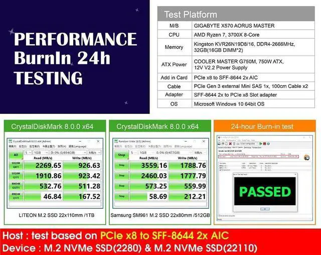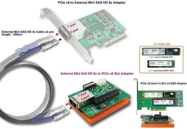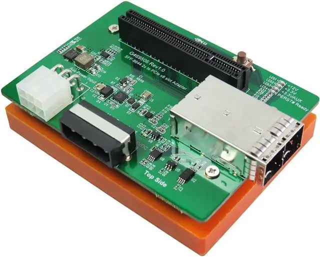 This adapter unit contains built-in SSF-8644 2x connector It includes in-built PCIe x8 slot The unit has programmable limit (current) is 6.5A It is used for Back-to-Back (B2B) FET Operation Micro SATA Cables PN # MS-1913-8XSA