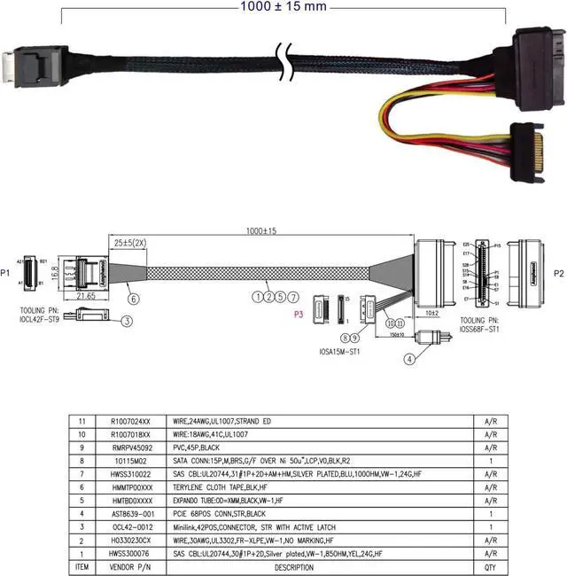 Micro SATA Cables PN # OCU-1734-U3