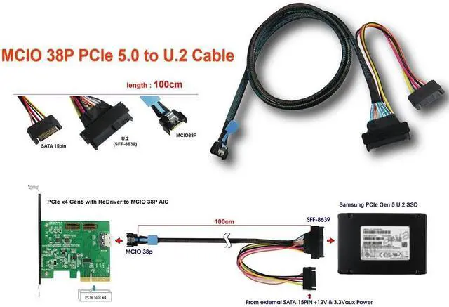 The cable is designed for ease of use, allowing for a plug-and-play installation. This simplifies the process of integrating U.2 storage devices