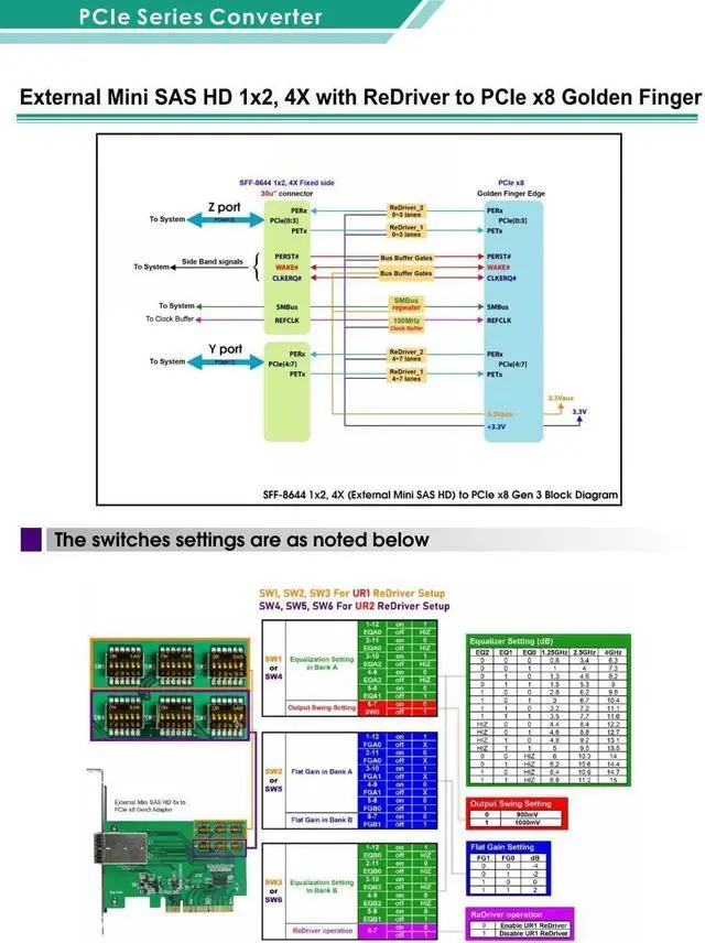 Its features incorporate external Mini SAS HD 1x2(4X) to PCIe x8 GF Gen 3 convert