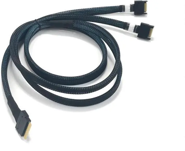 Cable features a SlimSAS 8i connector on one end, and two MCIO 4i 38P connectors on the other end.